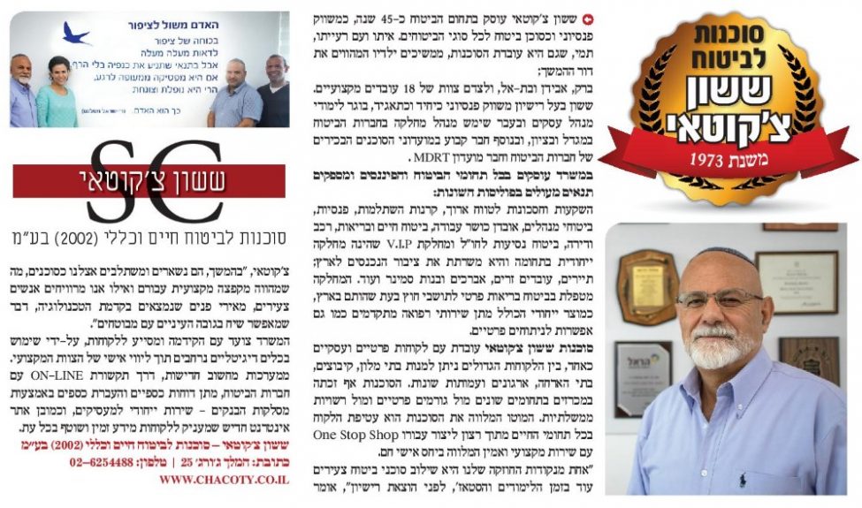 לקוחות צ'קוטאי היקרים, באתר תוכלו לקבל מידע על כלל הביטוחים השונים ולקרוא על שחדש בעולם הביטוח. כמובן שאנחנו תמיד כאן בשבילכם, אתם מוזמנים להתקשר ולהתייעץ בכל עניין ביטוחי.